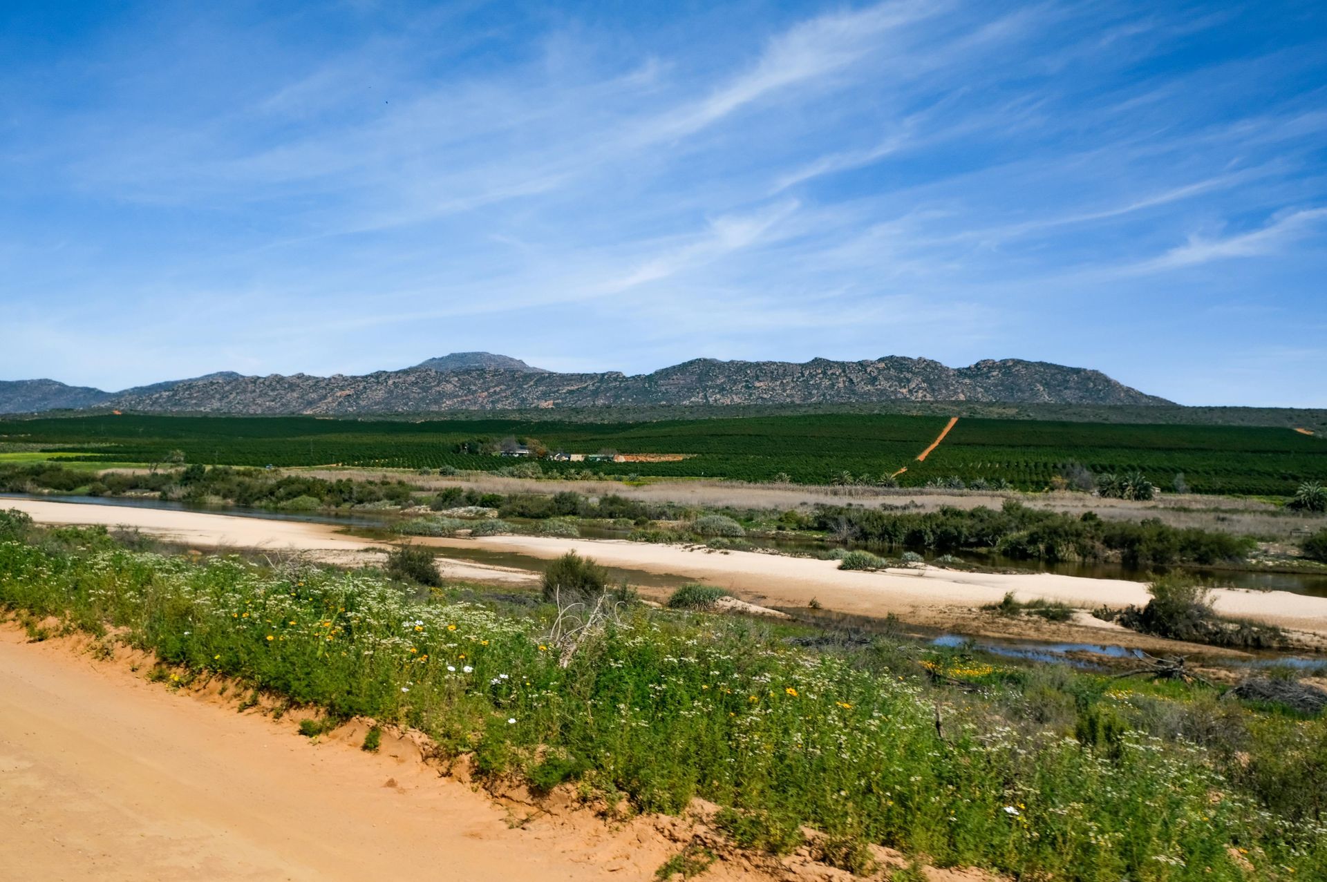 Clanwilliam lies at the heart of flower routes, hiking trails, and rock art sites. Known for Rooibos farming, fruit, vegetables, and sheep, the town also features the famous veldskoen factory. The Clanwilliam Dam Resort is popular for water sports and fishing, while Ramskop Nature Reserve showcases endemic wildflowers, especially in August and September.